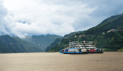 圖為一艘輪船行駛在三峽西陵峽境內秭歸縣屈原鎮水域。